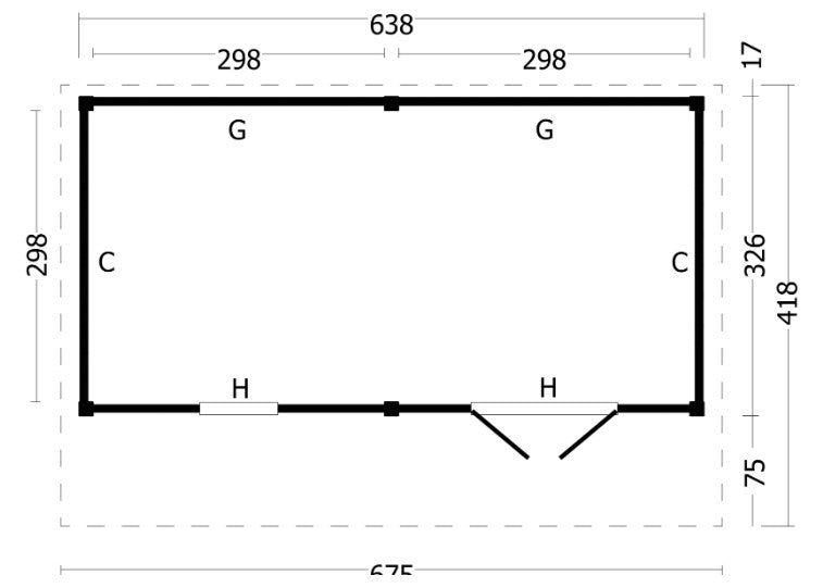 Deze kapschuur is ook leverbaar met zwart gespoten wanden.