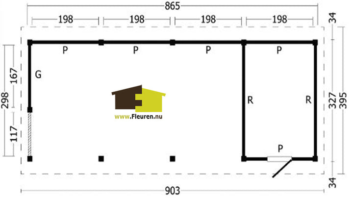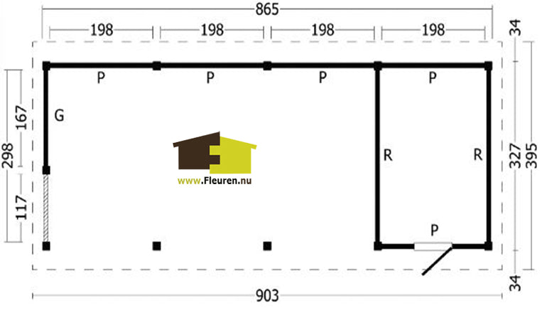 Afmeting: B903xD395cm.
