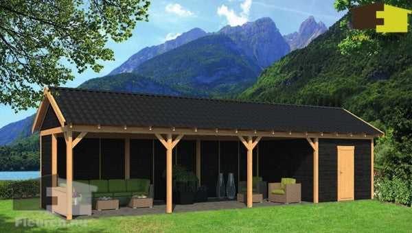 Deze overkapping is ook leverbaar met zwart gespoten wanden.