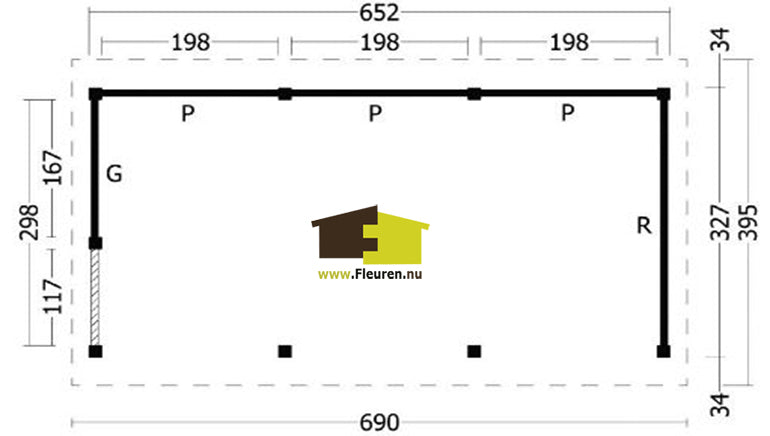 Afmeting: B690xD395cm.