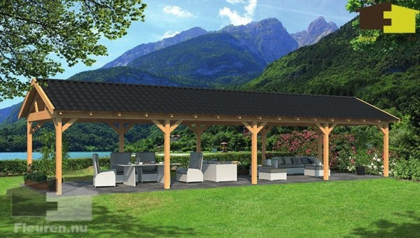 Deze overkapping is tegen een meerprijs ook leverbaar met blanke of zwart gespoten wanden.
