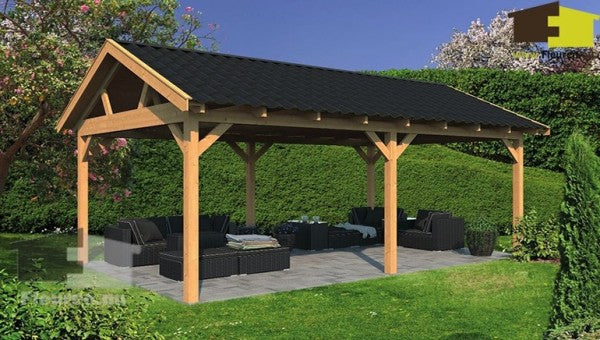 Deze overkapping is tegen een meerprijs ook leverbaar met blanke of zwart gespoten wanden..