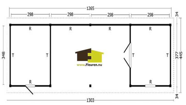 Afmeting: B1303xD445cm.