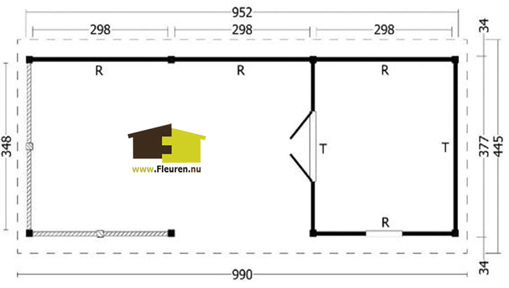 Afmeting: B990xD445cm.