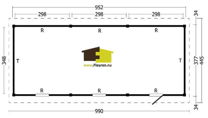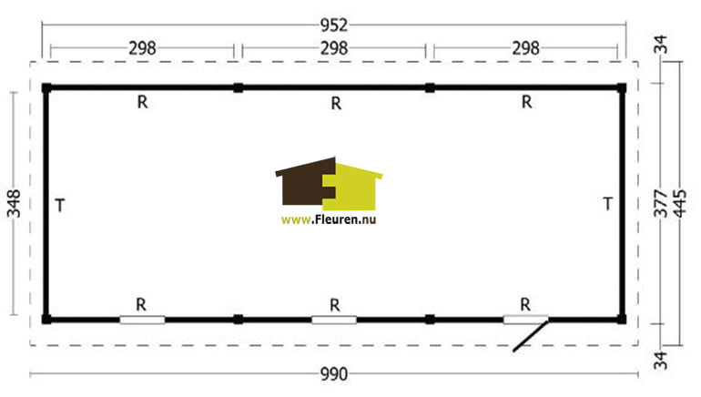 Dit zadeldak model is ook leverbaar met zwart gespoten wanden.