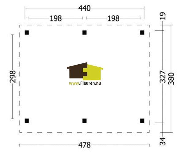 Afmeting:B478xD380cm.