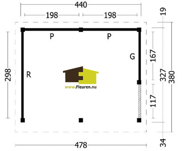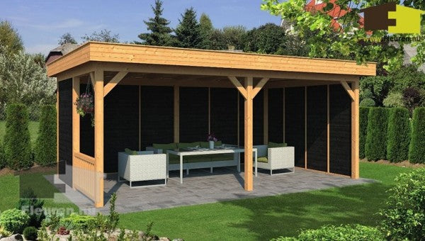 Deze overkapping is ook leverbaar met zwart gespoten wanden voor de zelfde prijs