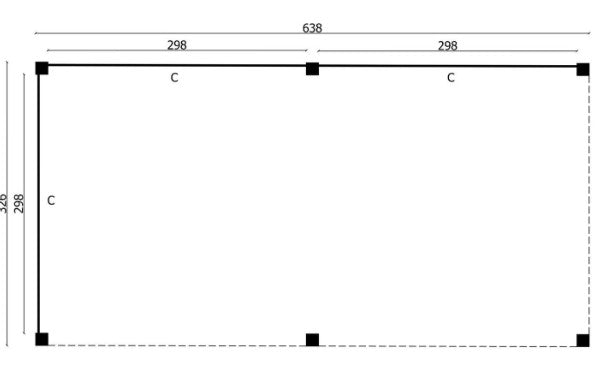 Dakconstructie: Ringbalk: 14x14cm. Dakgordingen: 4,5x14 + 6,5x14cm.